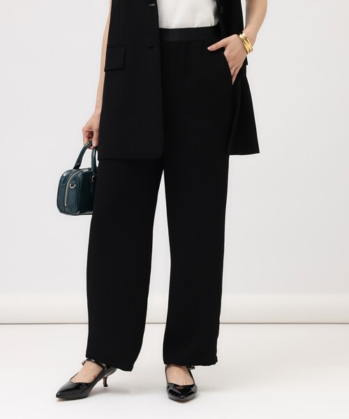 【デザイン】表情のある素材感がポイントのワイドパンツ。ウエストはぐるッととゴムで、穿き心地の良い仕様にしています。夏に便利な軽くイージーなパンツです。※ポケット数:横×2【素材感】異収縮混繊糸とストレッチ糸を使用したフクレの二重織素材。ストレッチ糸のキックバック性を利用して、生地表に自然な凹凸感を出しているのが特徴です。減量加工で膨らみ感をプラスし透けにくく、幅広いアイテムに使用できる素材です。※裏地なし【着こなしポイント】153-49321とのセットアップです。暑い時期のインナーには153-19321などのTシャツがおすすめです。表情のある素材なので単品としても使いやすいです。※照明の関係により、実際よりも色味が違って見える場合があります。また、パソコン・スマートフォンなどの環境により、若干製品と画像のカラーが異なる場合もございます。モデル情報:身長163cm B80 W59 H82 着用サイズ:02(M)店舗へのお問い合わせ商品番号:153-69321●製品寸法:00(XS):W63cm H91cm 股下65cm 前股上26cm 渡り幅29cm 裾幅21cm01(S):W66cm H94cm 股下70cm 前股上26cm 渡り幅30cm 裾幅22cm02(M):W70cm H98cm 股下70cm 前股上27cm 渡り幅31cm 裾幅23cm03(L):W73cm H101cm 股下71cm 前股上27cm 渡り幅33cm 裾幅24cm04(2LT):W76cm H104cm 股下71cm 前股上28cm 渡り幅34cm 裾幅25cm42(2L):W80cm H108cm 股下70cm 前股上29cm 渡り幅35cm 裾幅26cm44(3L):W84cm H112cm 股下70cm 前股上29cm 渡り幅36cm 裾幅27cm46(4L):W88cm H116cm 股下70cm 前股上30cm 渡り幅38cm 裾幅27cm48(5L):W92cm H120cm 股下70cm 前股上31cm 渡り幅39cm 裾幅28cm50(6L):W96cm H124cm 股下70cm 前股上32cm 渡り幅40cm 裾幅28cm備考: