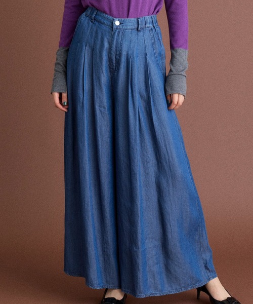 裾に向かって袴のように広がるたっぷりとした裾が特徴のワイドパンツ。トロミ感のある素材は、動きに沿って揺れるエレガントで脚長効果も期待できるシルエットです。ベーシックなTシャツやニット合わせはもちろん、同素材のブラウスとのセットアップすたいるもおすすめです。・サイド部分ゴム仕様セットアップ対応のブラウス:7143181505■サンプル撮影商品■こちらの商品はサンプルでの撮影となっております。実際の商品とは、サイズや色味、素材、デザイン等の仕様が若干変更になる場合がございます。