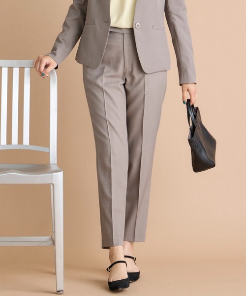 環境に優しいエシカルメランジ生地のテーパードパンツ。少し短めなレングスのテーパードラインがシャープな印象を演出します。パンプスはもちろんフラットシューズやスニーカーも合わせられるシルエットです。シワになりにくく梳毛見えで秋らしさもありながら、季節の変わり目でも着やすい素材です。水洗い可能なのも嬉しいポイント。同素材のカラーレスジャケットとのセットアップスタイルはもニットやブラウスと合わせた単品使いもおすすめです。 ・ポケットあり・ウエスト後ろゴム仕様 ・水洗い可 セットアップ対応のジャケット品番:7144141501 ■サンプル撮影商品■ こちらの商品はサンプルでの撮影となっております。実際の商品とは、サイズや色味、素材、デザイン等の仕様が若干変更になる場合がございます。