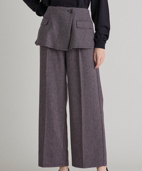 リラックスワイドシルエットのツイードパンツ。上品見えするしっかりとした生地感で、落ち着きのあるチェックツイード柄が、大人らしい秋の着こなしをアシストしてくれます。付属のペプラムでお腹周りを隠してくれるのもポイント。新しいデザインがコーディネートの主役になってくれます。ニットやブラウス合わせはもちろん、同素材のジャケットとのセットアップスタイルもおすすめです。・裏地あり・ポケットあり・ウエスト後ろゴム仕様同素材のジャケット品番:7144141510■サンプル撮影商品■こちらの商品はサンプルでの撮影となっております。実際の商品とは、サイズや色味、素材、デザイン等の仕様が若干変更になる場合がございます。