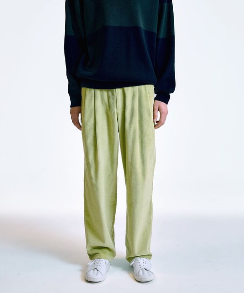City Ambient Productsのコーデュロイスラックス 【素材特性】 コットン素材の太畝コーデュロイ素材を使用。 高密度のコーデュロイと違い、柔らかさと軽さが特徴です。 適度な光沢感と太畝が、カジュアルな雰囲気を演出します。 【デザイン/スタイリング】 City Ambient Productsの定番型のダブルタックワイドテーパードシルエット。 サイズ感はヒップ、ワタリを広く設定し、テーパードを利かせた、野暮ったさを感じない上品なワイドシルエットに構築。 後ろウエスト部分には平ゴムを入れているためフィット感良く穿いていただけます。 スウェットアイテムからシャツまで、カジュアルでもキレイ目でも合わせやすいアイテムです。 【City Ambient Products】(シティ アンビエント プロダクツ) SHIPSが提案する新レーベル【City Ambient Products】(シティ アンビエント プロダクツ)。 Urban / Revival / Culture を軸に、境界を超えた自由な表現を追求。 ファッションを愛するすべての人達に向けたニュースタンダード。 「Ambient」とは、「周囲の」「包囲した」「辺り一面の」などの意味を持ち、 電子音楽の1ジャンルとして「環境音楽/Ambient Music」としても使われています。 【City Ambient Products】直訳すると〈都市環境製品〉となり、現代の都市生活に溶け込むプロダクトを提案していきます。 【注意事項】 ※末永く愛用頂く為に、アテンションタグ・洗濯ネームを必ずご確認の上、着用又はお取り扱いください。 ※撮影環境による光の当たり具合やパソコン・スマートフォンなどの閲覧環境によって、実際の色味と異なって見える場合があります。 商品の色味は商品単体で撮影した画像をご参照ください。 ※画像の商品はサンプルです。 実際の商品と仕様、加工、サイズが若干異なる場合がございます。