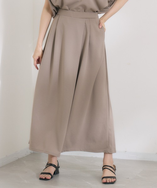 【KATHARINE ROSSセレクト】 サラッとした素材と伸縮性ある生地でベタつく季節も快適に着こなせるパンツ 仮撚加工(ポリエステル糸に一旦撚りを掛けたうえで熱を加え、撚りを戻す工程を繰り返す加工)を施すことで、 ふんわりとした風合いや弾力性、伸縮性が生まれます。 スカート見えのワイドなパンツで、気になるヒップや脚のラインを拾いにくいのが嬉しいポイント。 ゆったりとしたシルエットながら、フロントのタックでウエスト周りをすっきり見せてくれます。 同素材のブラウス(品番48994)とのセットアップ風のスタイリングもおすすめです。 ………………… 透け感:なし 裏地:なし ポケット:あり ………………… 【お買い物をよりお楽しみいただくために】 ・商品のお気に入り登録をおすすめします! ♡マーククリックで登録できます。 完売カラーの再入荷や、ラスト1点になったときの通知、 セールの際に通知などお得な情報を受けることができます。 ・ブランドのお気に入り登録もご一緒にお願いいたします! 新商品や再入荷、などいち早くブランドの最新情報をお届けします。