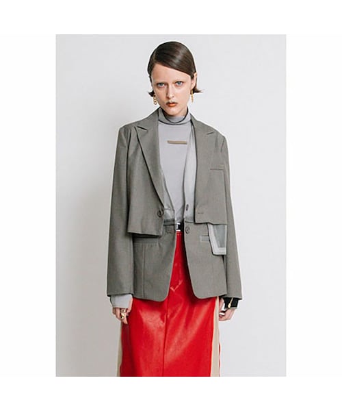 ショート丈ジャケットとベストのレイヤードアイテムで3WAYの着回しが楽しめるジャケットセット。