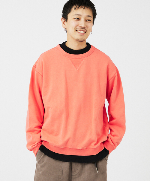 24春夏に好評頂いた、60年代の加工スウェットをイメージしてデザインしたクルーネックスウェットが再登場!先に生地をピグメント加工してから製品を作成しており、再度洗いをかけたダブルウォッシュ仕様。360gのウェイトの程よい肉感はシーズン通して長く着用して頂けます。シルエットは程よく余裕のあるオーバーサイズで、全体の加工感と相まってコーディネートのアクセントとして重宝します。また60年代スウェットのモチーフでもあるバックのダブルリブガゼットは製品自体の強度アップも兼ねた拘りポイントです。前回好評だったブラック、ブルー、ピンクに加え、新色グリーンとネイビーの2色追加した5色展開。**********************透け感:なし裏地:なし伸縮性:なし光沢感:なし生地の厚さ:普通**********************【スタッフ着用コメント】《スタッフH》身長:173cm/体重:62kg/体型:中肉中背/普段サイズ:M/着用サイズ:Lサイズ感:身幅が広い、ゆったりなシルエットです。素材感:厚すぎず、薄すぎずでオールシーズン使いやすい素材感です。着心地:サイズ感がゆったりとしているので、着心地抜群です。**********************《画像についてのご注意》※照明の関係により、実際よりも色味が違って見える場合があります。またパソコン・スマートフォンなどの環境により、若干製品と画像のカラーが異なる場合もございます。※商品の色味は、商品アップ画像をご参照ください。《商品のお気に入り登録について》「カートに入れる」または「予約する」右側のハートマークを押していただくと、再入荷、残り1点、セールなどの通知を受け取ることが出来ます。本体:洗濯機洗い(弱)