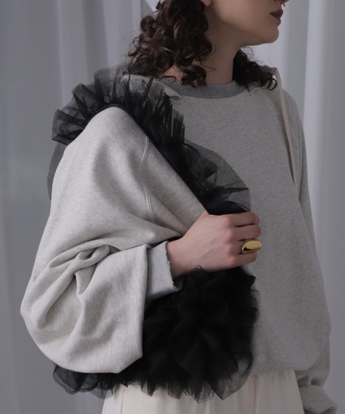 持ち手とショルダーにフリルをあしらった華やかなショルダーバッグ・500mlボトル収納可能・内ポケット×1・ブラック、グレー、ブラウン、ワインの4色展開【スタッフレビュー】肩掛けしたときにショルダーのフリルがアクセントのバッグは、デイリーはもちろん、オケージョンシーンにもおすすめです。スマートフォンやポーチなど身の周りのものが入る容量です。【お気に入り登録】♡商品のお気に入り登録♡再入荷・残り1点・セールの通知を受け取ることができます。♡ブランドのお気に入り登録♡新商品・再入荷/・ショップおすすめトピックスなど、ブランドの情報を受け取ることができます。【取扱注意事項】モデルの着用画像の場合、光の当たり具合により、実際の色味と異なって見えることがございます。色味は、商品生地の画像をご参照ください。【メーカー品番:LR-24227】