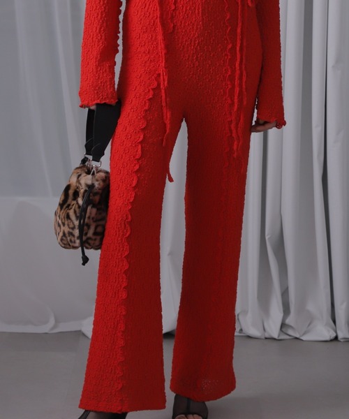 フラワーモチーフのレースがアイキャッチなレースパンツ・綿混でソフトなタッチが特徴のストレッチの効いたシャーリングレース・透けを気にせず着用できる総裏地仕様・ブラック、ホワイト、レッドの3色展開【商品特性】生地の厚さ:普通透け感:あり伸縮性:あり光沢感:なし裏地の有無:ありウエストのゴム仕様:あり着用シルエット:レギュラー【スタッフレビュー】ストレッチ性のあるシャーリングレースはフラワーモチーフが甘めの印象。フロントは切り替えを入れ配色メローを施しています。フロントに縦線を入れる事で自然とIラインが強調されるのも嬉しいポイントです。ウエストはラメ入りのゴムを使用。総裏をつけていますので透けも気になりません。同素材でシャーリングフラワートップス(6004213195)もあります。※生地の特性上、吊るしていると若干伸びてしまうので、ご自宅ではたたみで保管して頂くのがおすすめです。【お気に入り登録】♡商品のお気に入り登録♡再入荷・残り1点・セールの通知を受け取ることができます。♡ブランドのお気に入り登録♡新商品・再入荷/・ショップおすすめトピックスなど、ブランドの情報を受け取ることができます。【取扱注意事項】モデルの着用画像の場合、光の当たり具合により、実際の色味と異なって見えることがございます。色味は、商品生地の画像をご参照ください。