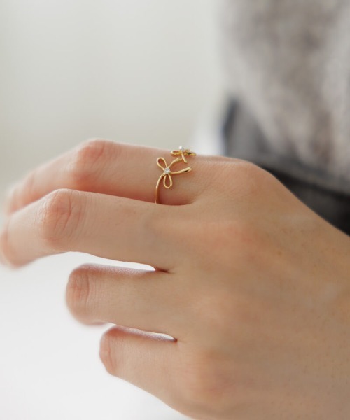 ■デザイントレンドのリボンモチーフハグリング♪華奢なリボンと控えめに輝くビジューが目を惹くポイントに◎他のリングとも合わせやすいデザインです。何にでも合わせやすいので普段使いからオケージョンまで幅広くご使用いただけます♡ハグリングの為、若干のサイズ調節が可能です。※開きすぎると壊れる可能性がございます。ご注意ください。■flower/フラワー「love&joy」をコンセプトに、商品に愛を込め、お客様に楽しんでいただけるような、ナチュラルでガーリーなアイテムを提案していきます。【お買い物を上手にお楽しみいただくためのPOINT2つ】◎ 購入ボタン横の ♡ (ハートマーク)をクリック! 完売カラーの再入荷通知、残り1点の通知、セールの通知を受け取れます。 (クリックまたはタップで商品のお気に入り登録♪)◎ ショップのトップページにある ♡ (ハートマーク)「お気に入りショップに追加」をクリック! 新商品や再入荷等、いち早くブランドのお得な情報を受け取れます。 (ブランドのお気に入り登録♪)
