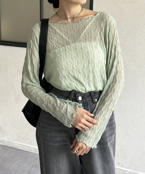 【2024AW】秋の立ち上がりを楽しむ上品なシアートップス【POINT】・表面間のある素材がポイント・透けすぎない程よい上品なシアー感・伸縮性があり着心地抜群◎・首元の開き具合で抜け感を演出【STYLING】・トップスとして1枚で着るのはもちろん、ニットや ジャケットのインナーとしても着用していただけます。・ボトムス次第で雰囲気が変わるので、カジュアルからきれいめまで 幅広いスタイリングをお楽しみいただけます◎【アフターケア】・洗濯可【KEYWORD】#シアー感 #透け感 #シアートップス #プルオーバー#シンプル #カジュアル #キレイめ #オフィス----------------------------------------------透け感:あり裏地:なし伸縮性:あり光沢感:なし----------------------------------------------※商品画像は着用イメージです。 光や角度により、実物と色味が異なる場合がございます。 また表示のサイズ感も実物とは若干異なる場合もございますので、 ご了承ください。※着用、お取り扱いの際は、商品についている品質表示と アテンションタグを必ずご確認ください。----------------------------------------------【Thevon】 自分を魅せる「ニュアンスファッション」オトメからオトナに向かう女性へ旬なアイテムを提案----------------------------------------------気になるアイテムは【お気に入り登録】がおすすめ!▽商品のお気に入り登録完売カラーの再入荷やラスト1点の通知、セール情報などを受け取ることができます。▽ブランドをお気に入り登録新商品や再入荷など、ブランドのお得な情報をいち早く受け取ることができます。