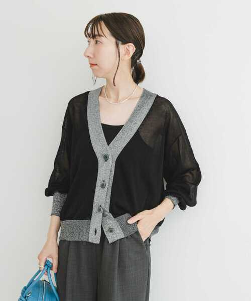 大人っぽい透け感でトレンドムードのあるスタイリングをお楽しみいただける、シアー生地で仕立てたカーディガン。衿元からボタンのライン、裾や袖口にラメ糸を施した生地に切り替えたこだわりのデザインに注目。シンプルになりすぎず、程よいアクセントを効かせてくれる1着です。【2024 Spring/Summer】【24SS】※この商品は、素材や網み方の性質上、仕掛け、引っ掛かりが起きやすい性質を持っています。お取り扱いには充分ごちゅいください。※着脱時・着用時には、ベルト、バッグ、アクセサリー、周囲の壁などとの摩擦や引っ掛かりにご注意ください。※その他お取り扱いに関しましては、商品に付属のアテンションタグをご覧ください。総重量 : 約200g※商品画像は、光の当たり具合やパソコンなどの閲覧環境により、実際の色味と異なって見える場合がございます。予めご了承ください。※商品の色味の目安は、商品単体の画像をご参照ください。▼お気に入り登録のおすすめ▼お気に入り登録商品は、マイページにて現在の価格情報や在庫状況の確認が可能です。お買い物リストの管理に是非ご利用ください。素材感透け感 : あり伸縮性 : ややあり裏地 : なし光沢 : ありポケット : なし