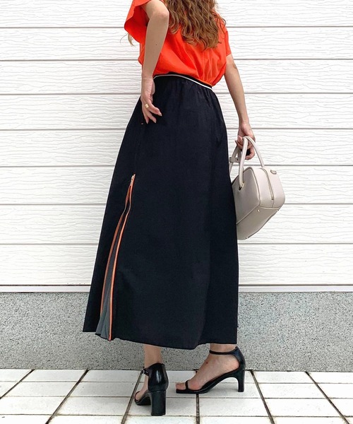 シルエットを変えて楽しめる、サイドファスナースカートです。 サイドのファスナーの開閉で、タイトめなシルエットとフレアなシルエットが楽しめる一着。 ファスナーとウエストゴム部分には同色の配色を施しアクセントに。 ファスナーを開けるとバイカラーになるのも◎ シンプル過ぎずにコーディネートに遊び心を加えられるスカートです。 《インフォメーション》 ◆商品のお気に入り登録 完売していても再入荷時に再入荷通知を受け取ることができますので、是非ご登録ください。 ◆ブランドのお気に入り登録 新商品や再入荷などの情報を受け取ることができますので、是非ご登録ください。