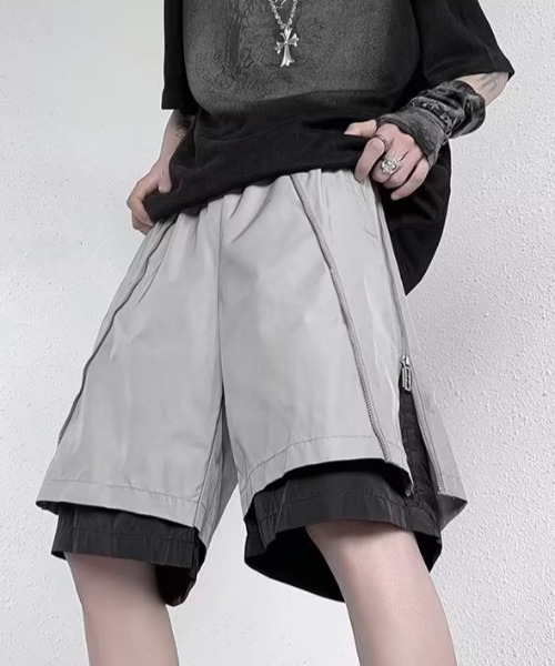 【DESIGN】 モノトーンなグレー×ブラックのバイカラー。 ジッパーを大胆に使ったデザイン性抜群のハーフパンツです。 韓国ストリート~テック・アウトドアシーンまで幅広く対応◎ 真夏は勿論、春先や秋口にもご着用可能です。 レディースもメンズライクな雰囲気で着て頂けるユニセックスアイテム。 Y2K、韓国ファッション、韓国ストリートが好きな方にもおすすめです◎ 【STYLING】 ロングスリーブTシャツやスウェット、パーカーなどのカジュアルなトップスや、 デニムジャケットやレザージャケット、トラックジャケットなどのジャケットと合わせてカジュアルなコーデに。 ニット帽やバケットハットなどストリートなアイテムと合わせるとストリートなスタイリングが組めます。 トレンドのオーバーサイズのアイテムとも相性抜群です。 シャツやカーディガン、テーラードジャケットなどと合わせるとキレイめ韓国コーデ、モードなスタイルに。 リングやネックレスなどのシルバーアクセサリーを合わせると更にGOOD。 ローファーなどの革靴、ヒールブーツなどのドレスシューズでキレイめにしても良し、 人気のスニーカーやサイドゴアブーツ、サンダルと合わせても◎ インスタグラム開設しました! 新着情報やお得な情報を発信していきますのでお気軽にフォローお願いします!! ID:@mgvofficial.jp こちらの商品はセレクト・インポートアイテムのためサイズ感が日本規格のものとは異なります。 お買い上げの際にはサイズチャートでご確認頂きますようお願いいたします。 【お買い物をよりお楽しみいただくために】 ●商品のお気に入り登録(ハートマークをクリック) 完売カラーの再入荷や、ラスト1点のお知らせ、セール情報などの通知を受け取ることができます。 ●ブランドのお気に入り登録 新商品や再入荷など、お得な情報をいち早く受け取ることができます。 ●最短で翌日お届け 商品をカートに入れた後、注文内容の確認ページで「即日配送」を選択していただければ、最短でご注文した翌日にお届け致します。 是非ご利用頂き、お買い物をお楽しみください。