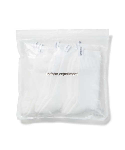 圧迫感を抑えながらもずり落ちにくさを実現した、オーセンティックなオフホワイトの3Pリブソックスは適度なボリューム感も相まって様々なスタイルのベースとして活躍してくれます。uniform experimentロゴを配したピスネームも効果的なワンポイントに。
