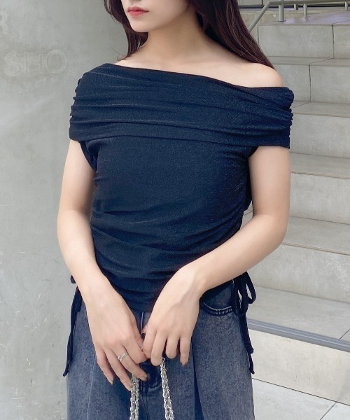 【美シルエットで差をつけるラメ入りオフショルトップス】 ▼Design トレンドのオフショルデザインが魅力のリブカットソートップス。 肌当たりが優しく、程良く伸縮性のあるリブカットソー生地で、ルックス以上に快適な着心地を実現。 デコルテ周りをすっきりと綺麗に見せ、ヘルシーな肌見せが叶う1枚。 ラメ生地がさり気なく光るので主役級間違いなしのトップスです♪ ▼Styling ウエストを程よくシェイプするように、ギャザーのデザインが施されているので、細見え効果も◎ サイドは短めなので、洗練された最旬スタイルを実現します。 ボトムにはあえて、カジュアルなワイドデニムや、トラックパンツを合わせて、 リラックス感のあるスタイルがおすすめ。 フレアスカートやミニ丈スカート合わせると、よりフェミニンなスタイルが完成。 カジュアルから、大人エレガントまで、幅広いスタイリングにマッチします。 ▼Recommend ・バレエコア ・オフショル ・ギャザートップス ・肌見せ ・あざと可愛い ・ガーリー ・韓国スタイル ・フェミニン ・大人カジュアル ・大人可愛い ・デートコーデ ・お出かけ