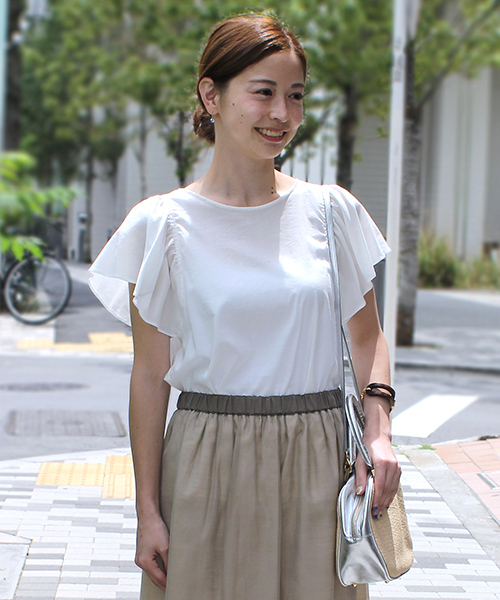 昨年大好評だったアイテムをアップデート!エアリーなバタフライスリーブが優美なブラウス。素材と袖の分量を調整し、より軽やか&フェミニンに。袖を気にせずジャケットやカーディガンをお召し頂けるように仕上げました。ボディーラインはすっきりのストレートシルエット。袖のボリュームが華やかな装いを演出します。パンツ、スカート共にバランス抜群!ボトムイン&アウトでお好みのスタイルをお楽しみ下さい。 メイン画像ホワイト Model : H160(cm) Size : 38 メイン画像ネイビー・レッド Model : H168 B80 W56 H84(cm) Size : 38 詳細 Model : H175 B81 W61 H88(cm) Size : 38店舗へお問い合わせの際は下記品番をお伝えください。品番:68-01-0119-249