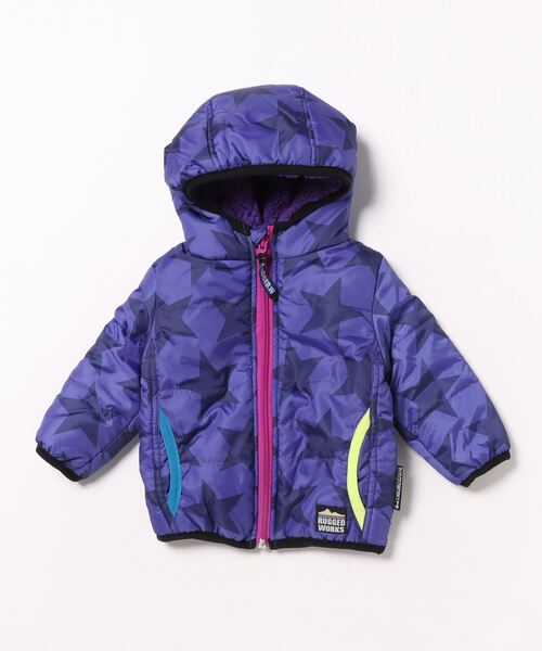 軽くて暖かい星柄フードジャケット♪ポケットの配色カラーが主張しすぎずかわいい一枚です。 男の子、女の子問わず着やすい柄・カラーです。