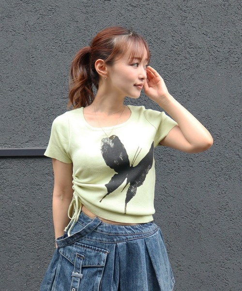 トレンドのY2Kライクなスタイリングが楽しめるTシャツ。目を惹く大胆なバタフライプリントがポイント!スリムフィットなサイズ感で女性らしいシルエットに仕上げました。程よくフィット感のある素材なので、ボディラインを綺麗に魅せてくれます◎