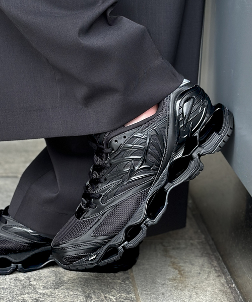 モダンなスタイルにフィットする、オールブラックのスニーカー。2010年代に登場したMIZUNOの技術力を結集したランニングフラッグシップモデル「WAVE PROPHECY」をライフスタイル仕様にアレンジしたモデルです。印象的なソールは、よりスムーズに動作できるようにクッション性に優れ、かつ軽量性を飛躍的に高めた次世代ミッドソール素材を使用しています。【MIZUNO / ミズノ】1906年に大阪にて創業した日本を代表するスポーツブランド。野球、バレーボール、バスケットボールなど様々な競技用のウェアを開発しており、数多くの著名なアスリートが着用しています。ウェーブ状のソールやバブルのようなクッションなど、高いパフォーマンスを引き出すテクノロジーに定評があります。※RB-LINEやM-LINEのスニーカーは、横幅がやや細身の仕上がりのためソックス等を考慮し少しゆとりを持ちたい方はワンサイズ上をおすすめします。※照明の関係により、実際よりも色味が違って見える場合があります。またパソコン・スマートフォンなどの環境により、若干製品と画像のカラーが異なる場合もございます。※商品の色味は、商品アップ画像をご参照ください。※メーカー型番:D1GA333701※カラーについて弊社販売カラー名:メーカーカラー名ブラック(001):01:ブラック※サイズについて弊社販売サイズ名:メーカーサイズ名23(230):23024(240):24025(250):25026(260):260