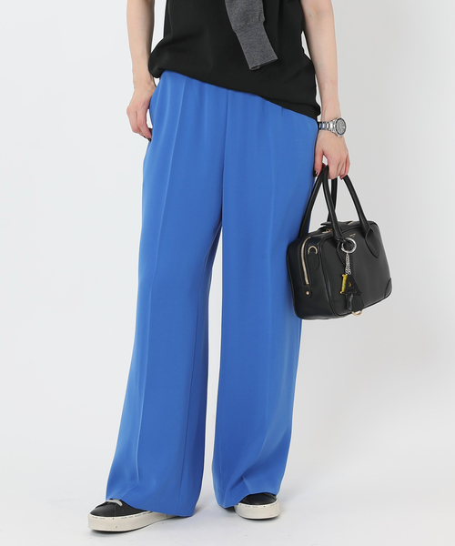 ダークトーンになりがちな秋冬のスタイリングに取り入れたいカラーパンツ。 さらりとした膨らみのある生地で仕立ており、まだ暑い時季からカットソーなどシンプルなスタイルのアクセントとして取り入れられる1着です。 ウエストゴム仕様のイージーな穿き心地もポイントで、程よくゆとりありながら若干フレアーのシルエットが脚のラインをキレイに見せてくれます。 秋冬のスタイルにも合わせやすい深みのあるレッドとブルーの2色展開です。 ********************* 透け感:なし 裏地:なし 伸縮性:なし 光沢感:ややあり 生地の厚さ:普通 ********************* ※照明の関係により、実際よりも色味が違って見える場合があります。 またパソコン・スマートフォンなどの環境により、若干製品と画像のカラーが異なる場合もございます。 ※商品の色味は、商品アップ画像をご参照ください。 本体:洗濯機洗い(弱)