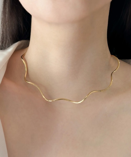 【EC0031-N】首元に華やかさをプラスしてくれるウェーブラインのチョーカー。存在感を出しつつもスタイリングしやすいボリューム感にするために、ウェーブの強弱やバランスにこだわり、一つ一つ職人さんの手によって作られています。デイリーコーデはもちろん、オケージョンにもおすすめです◎※全てのパーツに金属アレルギーの原因となりやすいニッケルが含まれないニッケルフリーのプレーディングを施しております。※ニッケルフリーのプレーディングは通常のメッキより水や汗に弱い為、使用後はこまめに柔らかい布等で乾拭きして直射日光を避けた湿度の低い場所で保管して下さい。-ECRu.(エクリュ)-肌に優しい素材にこだわった、メイドインジャパンのオリジナルアクセサリーブランドです。毎日おしゃれを楽しみたい方へ、ベーシックとトレンドをバランスよく組み合わせたアクセサリーを提案します。