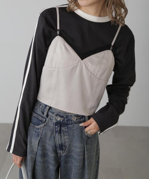 (fabric&design) ランジェリーライクに着れるキャミソールです。 光沢感がありすぎないサテンを使用しているので着やすいです。 肩紐を垂らしてバックスタイルも可愛いデザインにしています。 アジャスター付きなので長さも調節できるのもポイントです。 (styling) カジュアルなTシャツにビスチェのように着ていただくミックススタイルがおすすめです。 インナーに合わせるものによってはロングシーズンご着用いただけます。 いつものコーデにプラスワンアイテムとしておすすめです。 ■透け感:なし ■生地の厚さ:普通 ■裏地:なし ■伸縮性:なし ■光沢:ややあり ■シルエット:スモール --------------------------------------------------- ◆商品のお気に入り登録◆ お気に入りアイテムの値下げ・再入荷・在庫1点などの通知を受け取ることができます。 ◆ブランドのお気に入り登録◆ 新商品や再入荷、セール、クーポン配布などお得な情報を受け取ることができます。 ---------------------------------------------------