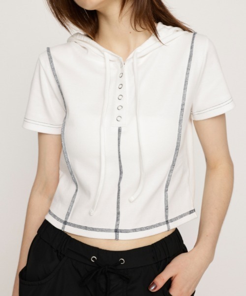 ■POINT:配色のオーバーロック加工がポイントのフーディー。■DETAIL:リメイク感のある配色のオーバーロック加工がコーディネートのアクセントに。■STYLING:様々なボトムスに合わせやすいアイテムです。ロングスカートやミドル丈のスカートを合わせると、トレンド感のある着こなしが完成します。■透け感:なし■光沢感:なし■伸縮性:あり■裏地:なし※本品は素材の特性上色落ちします。洗濯、クリーニング、着用(使用)時に他の衣類や雑貨、家具類に色移りする事があります。特に汗や雨等で湿った状態では、色落ちが顕著になります。白、淡色との組み合わせは避け、お取り扱いには十分ご注意下さい。 ※商品画像はサンプルのため、色味やサイズ、素材の混率等の仕様に変更がある場合がございますので、予めご了承ください。 ※一部予約商品につきましては生産上の都合によりお届け予定日や店頭発売と前後する場合もございます。 ※追加生産商品は、一部の店舗、通販で販売中の場合がございます。予めご了承下さい。【SLY/スライ】「Casual」「Girly」「Mode」をベースに発信する、ディテールへのこだわりが詰まった、どこか必ず女性らしさを感じるアーバンスタイル。 さまざまなエッセンスをミックスした、時代の空気を体現するコレクションを展開。 ▼商品のお気に入り登録 お気に入りアイテムの値下げ・再入荷・在庫1点などの通知を受け取ることができます。 ▼ブランドのお気に入り 登録新商品や再入荷、セール、クーポン配布などお得な情報を受け取ることができます。