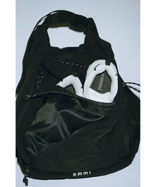 ■撥水加工 【emmi × MEGALOS】 メガロス社員が集結して出た「声」を形に! ウェルネスで女性の24時間を幸せにする」をコンセプトに、スポーツクラブMEGALOSと、2度目のコラボレーションが実現。 ■Design オフィスにも、オフィス帰りのジムにも、週末にはママBAGにもなる多機能バックパックです。 撥水機能付きのバッグは、リュックとしてだけでなく、肩がけ、斜めがけ、手持ちなど、シ ーンに合わせて活躍するマルチウェイ。収納力抜群の大きさで、たっぷりのポケットやカ ラビナなど、細部にも使いやすさにこだわりました。シューズ用の巾着がセットでついて いるので、濡れたものや汚れたものを収納できます。フロントにemmiロゴ入りの特別仕 様。 ※照明の関係により、実際よりも色味が違って見える場合があります。 またパソコン・スマートフォンなどの環境により、若干製品と画像のカラーが異なる場合もございます。予めご了承ください。 商品の色味は、商品単品画像をご参照下さい。 ※商品画像はサンプルのため、色味やサイズ等の仕様に変更がある場合がございますので、予めご了承ください。