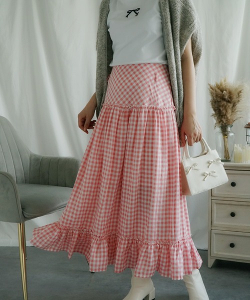 • 素材: 柔らかくて軽量な素材を使用し、通気性が良く快適な着心地を提供します。 • デザイン: 可愛らしいギンガムチェック柄と、ボリューム感のあるマキシ丈が特徴。裾にはフリルが施され、フェミニンな印象を与えます。 • カラー: ピンクと白のギンガムチェック。 • 用途: カジュアルな日常使いから、お出かけやリゾートスタイルまで幅広く対応。夏のコーディネートにぴったりです。 このスカートは、シンプルでありながらもおしゃれなデザインで、様々なシーンで活躍する一枚です。夏のファッションに彩りを添えるアイテムとしておすすめです。