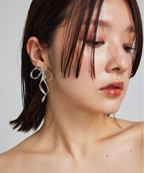 【取り入れるだけで華やかさをプラス艶めきリボンピアス】【Design】艶めきのあるビジューでデザインされたリボンモチーフが目を引くピアスです。細いロングチェーンが動くたびに揺れるリボンシルエットは顔まわりを明るく見せてくれて、小顔効果も◎。ハンサムコーデにも甘めコーデにも合わせやすく、スタイリングも選ばないデザインも魅力です。目を引くデザインなのでパーティーシーンでも活躍します。▼商品のお気に入り登録お気に入りアイテムの値下げ・再入荷・在庫1点などの通知を受け取ることができます。 ▼ブランドのお気に入り登録新商品や再入荷、セール、クーポン配布などお得な情報を受け取ることができます。