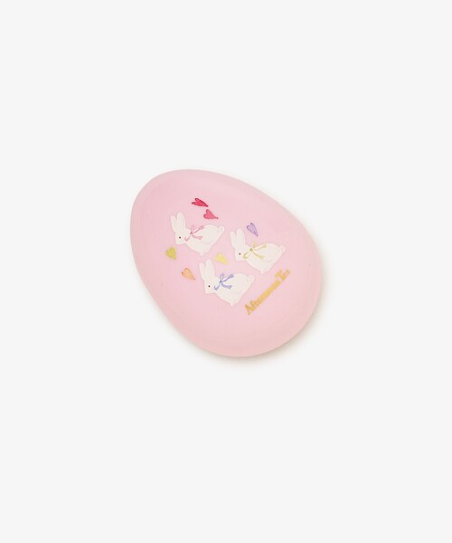 3匹の愛らしいウサギのアートがあしらわれたヘアブラシです。ころんとしたエッグ型デザインのフォルムを採用しました。握りやすい形状で、やわらかい長短のピンがスムーズに髪のもつれをときほぐしてくれます。濡れた髪にも使用できるため、お風呂上がりのヘアケアや、ピン部分を頭皮にやさしく押し当てて刺激する頭皮マッサージなどさまざまなシーンで活躍してくれます。ご自宅用にはもちろんのこと、ちょっとしたプレゼントにもおすすめですよ。同じシリーズのミニミラーも用意したので、この機会に是非揃えてみてはいかがでしょうか。 *1点ごとに柄の出方が違うことがあります。
