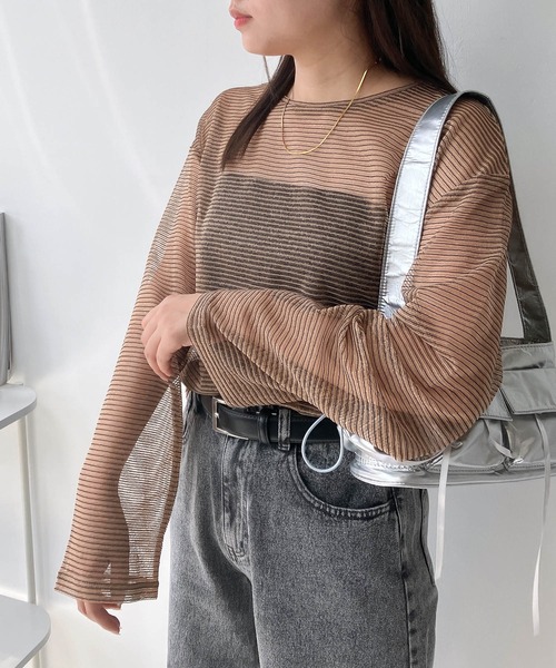 ほどよいシアー素材にピッチの細いボーダーが抜け感を演出してくれるゆるっとルーズなメッシュロンT季節の移り変わりのシーズンにぴったりな、シアー素材のロンTです。ルーズなシルエットにほどよい丈感だから、ゆるっとしつつも華奢見えする1枚。カジュアルすぎない細めのボーダーでどんなボトムにも合わせやすく、大人っぽい着こなしを楽しめます♪▼商品について・画像の商品はサンプルとなります。実際の商品と色味、仕様、加工、サイズ、素材等が若干異なる場合がございます。・サイト上のカラー名と、お届け商品に記載されているカラー名が異なる場合がございます。・商品の色味は、撮影場所や光のあたり具合などにより色味が違って見える場合がございます 。また、お客様のお使いのPCのモニター環境などにより色味が違って見える場合がございます。予めご了承の上ご注文下さい。▼お取り扱いについて・着用またはお取り扱いの際は、アテンションタグや洗濯ネームを必ずご確認ください。▼返品・キャンセルについて・着用、洗濯後の返品は致しかねます。・商品到着後、着用前に商品を確認して頂きますようお願い致します。♪商品のお気に入り登録お気に入り登録した商品は、ラスト1点になった時、完売商品の再入荷、セールになった時にお知らせします。♪ブランドのお気に入り登録新商品の発売、再入荷、セール情報など、ブランドのお得な情報を受け取ることができます。