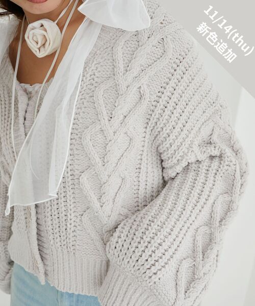 マシュマロのような肌触り♪ハート柄に編み立てた愛されカーディガンが登場 ■デザイン まるでマシュマロに包まれているかのようにふわふわと柔らかい、モールカーディガン。 ずっと触っていたくなる肌触り◎ボリューム感がありながらも軽く仕上げているので着心地も抜群です。 ケーブルをハート柄に編み立てることで、フェミニンムードをプラス。愛されカーディガンに仕上げました。 スタイリングしやすいショート丈でスタイルアップ効果も期待できます。 ■サイズ感 どんなボトムとも相性抜群のショート丈。脚長効果も期待できます◎ 低身長さんや小柄な方もスタイリングのバランスがとりやすい丈です。 ゆったりオーバーサイズで中にもしっかり着込めます。 #低身長 #小柄 ※ネックポイントからの着丈:48cm ■スタイリング どんなボトムとも合わせやすいショート丈。 ゆれ感のあるスカートと合わせた大人フェミニンコーデがおすすめです。 ワンピースの上に羽織っても◎ ・・・・・・・・・・・・・・・・・・・・・・ 透け感:なし 裏地:なし 伸縮性:あり 光沢感:なし 生地の厚さ:厚手 ・・・・・・・・・・・・・・・・・・・・・・ ■商品のお気に入り登録 再入荷通知やのこりわずか、お得なプライスダウンの情報も受け取ることができます。 ぜひご登録ください◎ ※サンプルでの撮影の為、製品と仕様が異なる場合がございます。