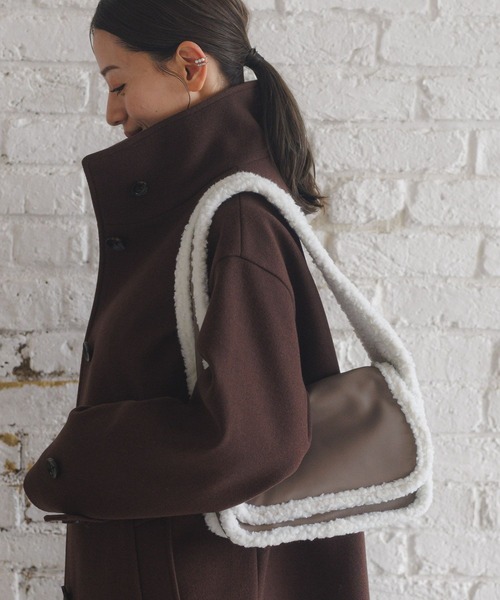 もこもこした縁取りデザインが可愛らしいバッグ。フラップのデザインとやわらかいフェイクレザーが大人っぽく、きれいめにもカジュアルにも合わせやすいアイテムです。マチがあり、収納力と持ちやすさを両立させたサイズ感。内側にはポケット付きで、荷物の整理もしやすいのも嬉しいポイントです。