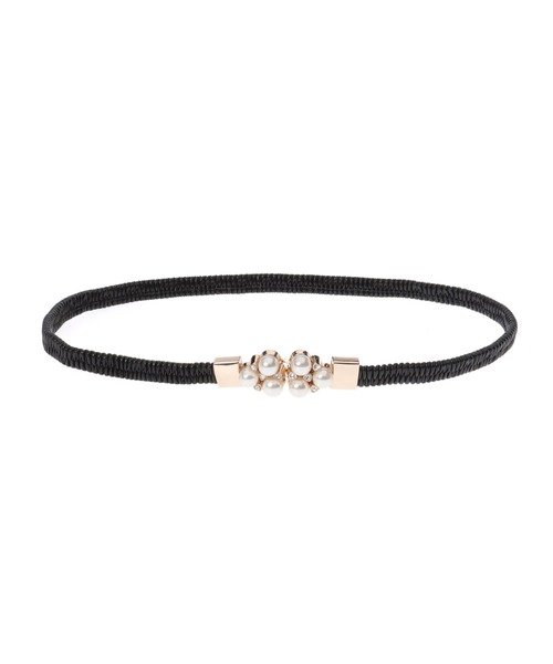 パール&ビジューを散りばめたバックルがクラシカル&レディなベルト。 全体が伸縮するゴムベルトはフィット感も◎。 普段使いはもちろん、お出かけシーンにも重宝します。 ボトムスにはもちろん、ワンピースなどのウエストマークにもおすすめ。 引っかけるだけの簡単着脱で使いやすいのもポイントです。 ベーシックで合わせやすいカラーがラインナップ。 ・合成皮革