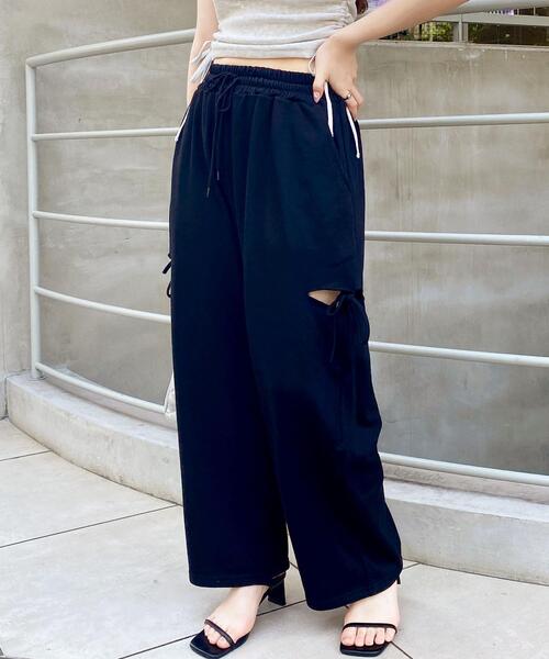 カジュアルな雰囲気のスウェットパンツをサイドカットでクールにアップデート。伸縮性のあるやわらかな生地で肌触りも抜群です。ウエストは総ゴムになっているのでフィット感も◎。フロントサイドには便利なオープンポケットが付いています。スラッシュカット部分はリボンでキュートなアクセントをプラス。ベーシックで着まわしやすいカラーが揃っています。・ウエストゴム・ポケットあり【以下グレー参考。カラーにより多少の誤差あり】・透け感:透けない・伸縮性:あり・生地の厚さ:普通・裏地:なし