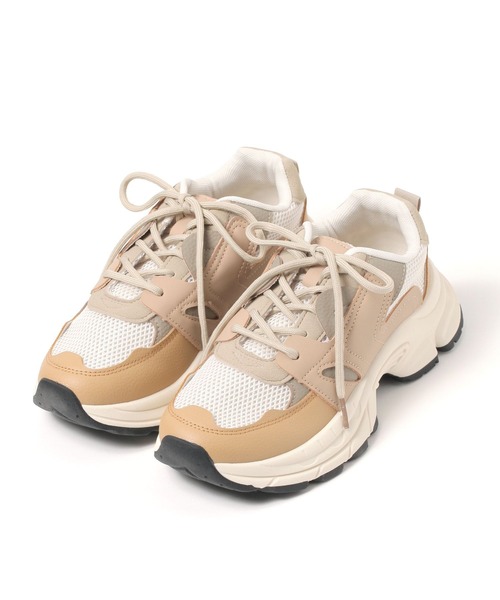 ーーーナチュラルカラーのボリュームソールスニーカー【素材】・ブラック19甲材:ポリエステル 合成皮革 レーヨン 綿底材:合成底・ピンク20、ベージュ55甲材:ポリエステル 合成皮革底材:合成底【デザイン】トレンドの厚底スニーカーをスタディオクリップらしいデザインに。クッションインソールと柔らかいアッパーで優しい履き心地。【機能】・消臭・抗菌防臭機能のあるテープをつま先裏地に使用・クッション性のあるインソールに使用し、柔らかい足当たり・甲材、裏材に柔らかい素材を使用し、優しい履き心地ーーー【コーディネート】カジュアルなコーディネートはもちろん、ナチュラルなテイストにもピッタリのアイテムです。