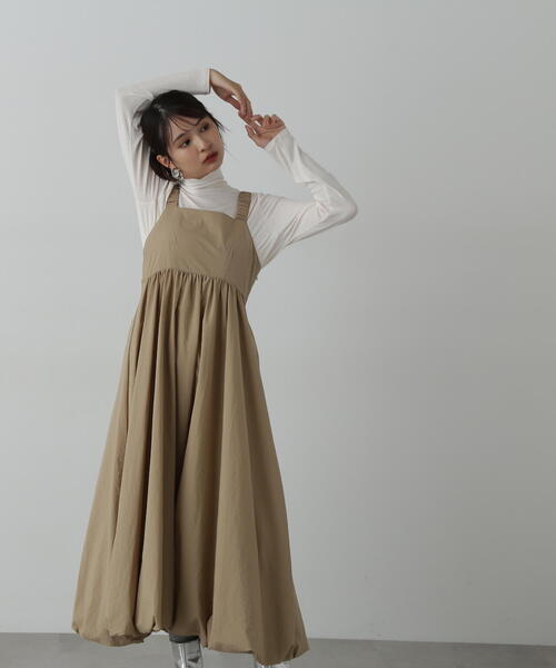 バルーンシルエットが大人フェミニンな雰囲気のキャミワンピース。 ナイロン素材による、裾まわりでふんわりとした構築的なバルーンシルエットが特徴です。 バックスタイルは肩紐が落ちにくい仕様、脇ファスナーで着脱いただけます。 中はニットを合わせ、足元はスニーカーでカジュアルダウンしたり、ブーツ合わせもお勧めです。 ********************** 透け感:なし 裏地:あり 伸縮性:なし 光沢感:なし 生地の厚さ:普通 ********************** ●取り扱いについては、商品についている品質表示でご確認ください。 ●撮影はサンプル商品で行っている為、仕様とサイズが異なる場合がございます。 ●スタジオ及び屋外で撮影した着用画像は、光の当たり具合やご覧のモニターによって色味が違って見える場合があります。予めご了承ください。 ●生産時期により色・素材・サイズ感など多少異なる場合がございます。予めご了承ください。 ≪お買い物をよりお楽しみいただくために≫ ・「商品のお気に入り登録」 再入荷通知や、ラストの通知、セール通知も受け取ることができます。 ・「ブランドのお気に入り登録」 新商品や再入荷など、お得な情報を受け取ることができます。