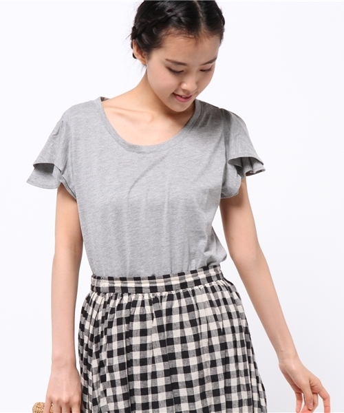 Discoat(ディスコート) フリル袖でキュートさを取り込んだ、カジュアルでシンプルなTシャツです。ポリエステルコットンの快適な素材感とボトムスを選ばない抜群の着回し力がデイリーユースにぴったり。ヒップにかかる長めの裾丈なので、ボトムスインやアウトがすっきりと決まるのも好ポイントです。
