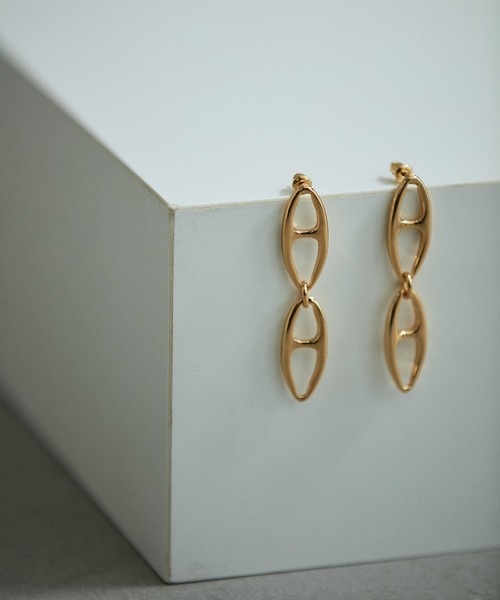 2つ連なるアーモンドデザインが存在感をプラス。揺れるモチーフが目を惹くチェーンピアス◆2024-25秋冬◆ADAM ET ROPE' FEMME【Material】合金/チタンポスト/真鍮+メッキ加工【Design】アーモンドの様な形のチェーンが2つ連なった、揺れるモチーフチェーンピアス。程よい存在感がしっかりコーディネートのポイントになってくれるデザイン。【Color】ゴールドとシルバーの2色展開。