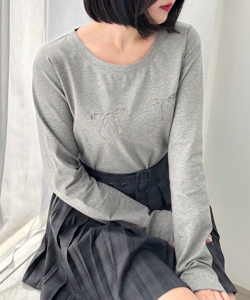 ーーー 【デザイン】 フロントにレースのリボンをあしらった 今年らしいデザインのロングスリーブカットソー。 リボン部分はくり抜いてレースを施した仕様なので さり気ない透け感があざと可愛い1着です。 合わせやすい丈感にベーシックなシルエットで ロングシーズン着回せます! ーーー 【スタイリング】 甘いムードを併せ持ったカットソーには カジュアルなデニムコーデがおすすめ。 ヘザー定番のミニボトム×ブーツを合わせたスタイリングも 可愛い◎ ※屋外の光や照明の当たり具合で、実際の商品と画像の色味に違いが発生する場合がございます。