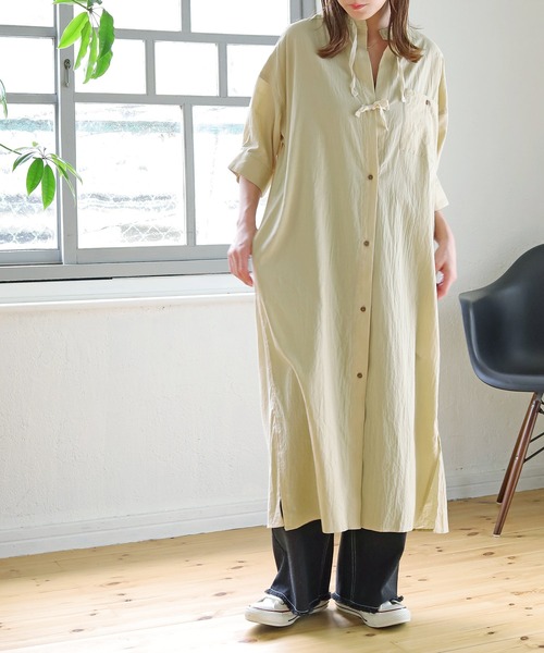 大人ナチュラルな雰囲気漂うシャツワンピース。 前開きにサージカルワンピースのデザインを施して大人かわいい印象に。 チェック生地を使用し秋ムードを出しつつ、 薄手のコットン生地で若干の透け感があるの暑い時期でも涼しく着られる素材感です。 袖口のボタンに使用した小さめのウッドボタンもさり気ないポイントに。 長過ぎず短過ぎない絶妙な丈感で身長を気にせずに着ていただけます。 デニムやレギンスをチラ見せさせるのも◎ 足元にはスポーツサンダルやスニーカーを合わせてカジュアルダウンさせた着こなしはもちろん、 パンプスとの女性らしいスタイリングもおすすめです。 サイドスリット入りで抜け感をプラス。 ポケット付きで実用性も◎ ドロップショルダーデザインでさり気なく華奢見えするのも嬉しいポイント。 ナチュラルな肌当たりのコットン100%。 薄手で軽い柔らかな肌触りで快適な着心地が叶います。 - - - - - - - - - - - - - - - - - - - - - - - - - - - - - - - - - 透け感:ややあり 裏地:なし 伸縮性:なし 光沢感:なし - - - - - - - - - - - - - - - - - - - - - - - - - - - - - - - - - ※ サンプル商品で撮影をしております。生産時の生地のロット違いによる色の差が生じる場合もございます。不良品ではございませんのでご了承くださいませ。 ご不安のある方、ご理解いただけない方に関しましては、大変心苦しい限りではございますがご購入をご遠慮いただけますようお願いいたします。 夏服/チェック柄/淡色