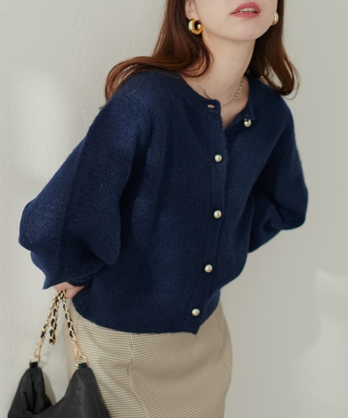 【2024AW natural couture】ころんとした釦が可愛いふわふわカーディガン■Design毛足がありふんわりと優しい触り心地のニットカーディガン。ころんとした形が可愛い釦は、甘さを抑え大人フェミニンな印象に。コンパクトなサイズ感で使い勝手も抜群で、前を閉じてプルオーバー風にも、羽織としても使えてコーディネートの幅が広がります。オフホワイト、モカ、オレンジ、グレー、ボルドー、ネイビー、ブラックと豊富なカラー展開なので、お気に入りの1着が見つかるはず。■Stylingコンパクトなサイズ感なので、ハイウエストのボトムスと相性抜群。ふわふわの生地感ところんとした釦に存在感があるので、シンプルなコーディネートのアクセントになってくれます。マーメイドスカートやフレアスカートと合わせても甘くなり過ぎず、デニムでカジュアルダウンしても品良くきまる万能アイテムです。■Fabric毛足がありふんわりと優しい肌触りのニット生地を使用。チクチク感がなくストレスフリーでお召し頂けます。============================透け感:なし裏地:なし伸縮性:あり光沢感:なし生地感:毛足がありふんわりと優しい肌触りのニット生地============================※着用、お取り扱いの際は、商品に付いている品質表示とアテンションタグを必ずご確認ください。【お気に入り登録でお得な情報がいっぱい】・「商品のお気に入り登録」で再入荷通知や、ラスト1点の通知、セール通知をいち早く受け取ることができます。・「ブランドのお気に入り登録」で新商品や再入荷など、お得な情報を受け取ることができます!※店舗の入荷時期は商品によって異なります。店頭の在庫状況につきましては各店舗にてお問い合わせください。※撮影時の光の関係で、画面上の画像と実際のお色とでは若干の色差が生じる可能性がございます。また、ご覧いただいているモニター画面や、お使いのブラウザによっても、お色の違いがございますことをあらかじめご了承くださいませ。