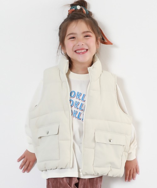 トレンド感のある『洗える ファイバーダウン オーバーサイズ ベスト』秋から着られるボリューミーなダウンベストが新登場。中にゆるっとしたアイテムを合わせやすいシルエットも魅力です。■シリーズ“かるくて、あたたかい” は子どもの味方ほっぺを真っ赤にして、寒空の下で駆け回る子どもたちにとって着ていることを忘れるくらいの軽さと、寒さを感じない暖かさは必需品。子どもの身体に負担をかけない、「毎日着たくなるアウター」を目指して生まれた、devirockのファイバーダウンシリーズ。■素材ふんわりと柔らかな肌ざわりが心地良い、ファイバーダウン表地には、柔らかく滑らかな肌ざわりのナイロンタフタを使用。中綿は、軽くてふんわりしたファイバーダウンを使用することで快適な着心地です。家庭でお洗濯出来るのも嬉しいポイント。伸縮性:なし■スタイリングゆるっとしたシルエットのトレーナーやパーカーを合わせて、とことんおしゃれに着こなすのがおすすめ。秋口からいろんなコーディネートを楽しんでみてください。■洗濯方法洗濯機洗い可(デリケート洗い) / 漂白剤使用不可 / 乾燥機使用不可 / 日陰つり干し/ 洗濯ネット使用■ご注意事項中わたの片寄りが起こった場合は、その部分を軽く叩く、又は揉んで全体的に中わたを整えてください。・摩擦や水、汗などで色が移ることがあります。ご注意ください。・平置きにて採寸しているため、サイズや形に多少の誤差が生じる場合があります。あらかじめご了承ください。・生産時期により、多少色味が異なる場合がございますが、素材・サイズ等の品質に違いはございません。ー devirockについて ー 子育てがもっと楽しくなる社会を目指し、親と子が感じる課題を解決する"新しいあたり前"を提案しています。 男の子・女の子のデイリーウェアを中心にラインナップ。ベーシックからトレンドまで幅広いデザインと、ベビーからキッズまでの豊富なサイズ展開が魅力の子供服ブランドです。