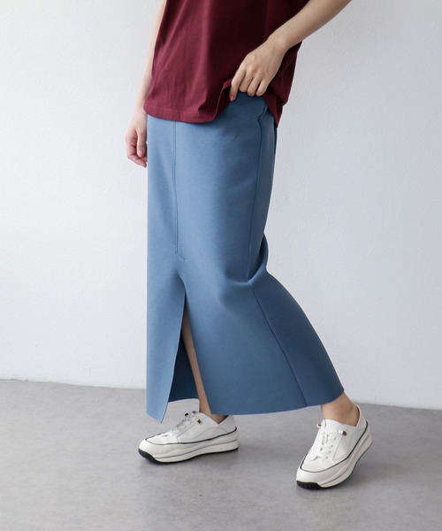 ダンボールスリットスカート24AW人気のタイトスカートに新色登場☆スポンディッシュなポンチ素材を使用したスカートは見た目以上に軽く、ウエストはバックのみゴム仕様にしてあるので履き心地抜群。ハリ感のあるポンチ素材なので、履いた時のラインがきれいな1枚です。【Limue/リミュ】ライラックを意味する“lilas”、スズランを意味する“muguet”、その美しい花々を象徴するように名付けられた造語 “Limue”(リミュ)“繊細さの中にある強さ” を軸に、しなやかで柔らかい女性らしさを表現。ファクトリーブランドらしく、せっかく買うなら大切に着たいというお客様へむけて、お洋服の新しい価値と価格をご提案するブランド。--------------------------------------透け感:なし裏地:なし伸縮性:ややありケア方法:手洗い可※お洗濯の際は洗濯表示を必ずご確認ください。--------------------------------------