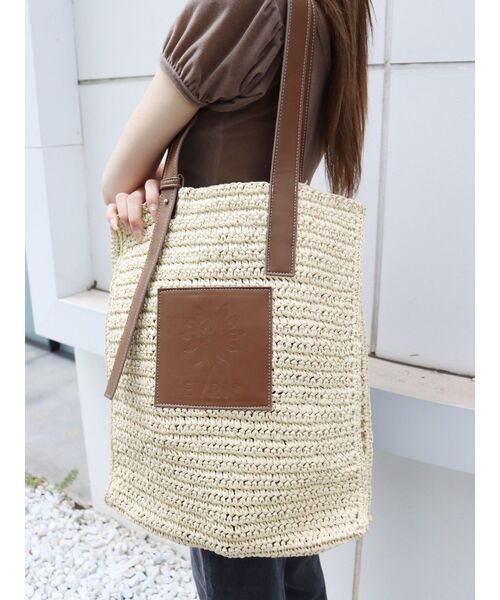 ■デザインワンポイントロゴの型押しとあえて長めに垂らしたショルダーがポイントの夏らしいペーパーバッグです。マチ付きで容量もたくさん入ります。A3サイズも入るサイズです。