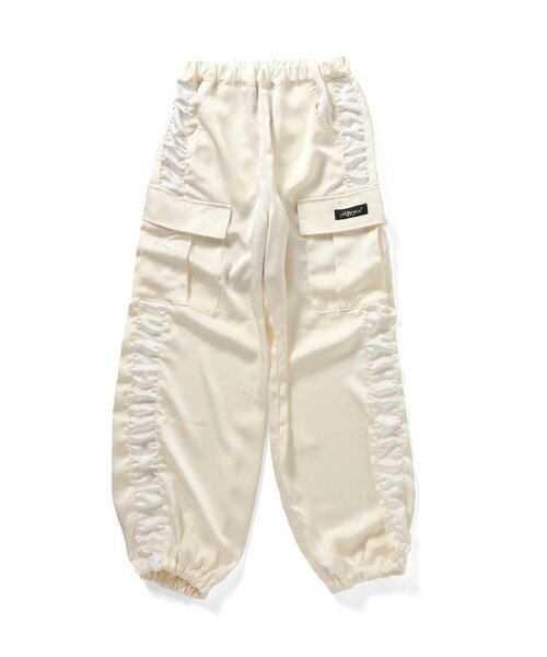 ALGY(アルジー)の「サテンカーゴパンツ」は、流行に敏感な女のコの日常を可愛く、甘く彩るデザインが人気!これ1枚でおしゃれ上級者になれちゃう! 【取り扱い表示】 40℃を上限に洗濯機で洗濯、デリケートアイテムモード、ネット使用、漂白剤を使用禁止、色物は同系の色と一緒に、洗濯後直ちに取出し、タンブル乾燥不可、日陰で吊り干し、低温でアイロン、商業ドライクリーニング不可 【ご注意事項】 この商品は着用中の摩擦や洗濯により毛羽の乱れ、毛羽脱落、毛玉が生じることが有ります。できるだけ美しくご利用頂く為に次のことにご留意下さい。 ○毛玉は毛玉取り器またはハサミで丁寧にカットして下さい。 ○毛羽が他に付着した際はテープやブラシで除去して下さい。 ○他の製品とは洗わず、単独でお洗濯して下さい。 ○タンブル乾燥はお避け下さい。 この商品は、素材感と肌当たりを重視し柔らかい風合いのデリケートな生地を使用しております。 次のことにご留意の上、お買い求め下さい。 ○激しい運動や無理な力が加わることにより、縫い目が開いたり、織り糸が滑って織り目が開くことがあります。 ・過度な力がかからない様に着用、着脱の際には十分ご注意下さい。 ・柔軟剤のご使用はお避け下さい。 ○はげしい摩擦や引っ掛けで糸引けが起こることがあります。ベルトやかばんなどでの引っ掛けには十分ご注意下さい。 ※商品により多少の誤差が生じる事がございます。あらかじめご了承下さい。 ※ご使用のパソコンやブラウザの環境により、実際の色とは多少異なる場合がございます。 ※モデル着用写真についてはイメージの為、実際の商品とカラーや仕様が異なる場合がございますので、商品画像をご覧ください。 【 ALGY -アルジー- 】 「 ALTERNATIVE + GIRLY = ALGY 」 おしゃれをアップデートしたい女の子へ "毎日着たい"がきっと見つかるガーリーカジュアルブランド