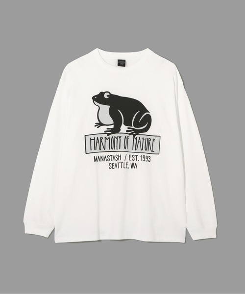 MANASTASH/マナスタッシュ/CiTee L/S TEE HON/シティーロングスリーブTシャツ ハーモニーオブネイチャー素材・ヘビーウェイトの7.3ozコットン天竺100%特徴・吸湿性や速乾性に優れており、ザラっとしたアメカジらしい風合いが特徴。さらに仕上げの洗い加工でざっくりとしたドライタッチな風合いに。・23SSから展開が始まったMANASTASHの定番Tシャツ【CiTee】素材・世界各国に生息し、人間との関係性の深いカエルを中心に、【HARMONY OF NATURE】というメッセージを添えたグラフィック。スタイリング・シンプルなプリントTでパンツを選びません。・同じくコットン素材のクライマーパンツとの相性は◎【MANASTASH/マナスタッシュ】1993年に米国シアトルで設立された<MANASTASH>。ブランド名の由来となる北アメリカ大陸の西海岸沿いを南北に走るカスケード山脈から駆け落ちるマナスタッシュ山高原は、スキーやトレッキング、マウンテンバイク、ラフティング、カヤックなど多様なアウトドアスポーツが楽しめることで有名です。創業時よりヘンプやリサイクルフリースなど環境に優しい素材を採用して最高のアイテムを作ることを理念に掲げ、旧き良きアメリカのプロダクトをデザインベースにしたライフスタイルブランドは、ファッションとカルチャーをクロスオーバーさせた新しいスタイルを提案します。