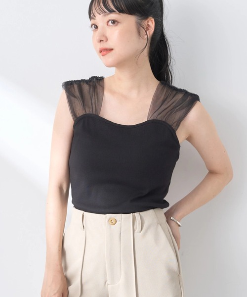 サラッと楽に着用できるカップ付きキャミソール。 ショルダーラインにクシュッと優しいニュアンスをプラスしてくれるチュールドッキングがおしゃれなデザインです。 丸くカッティングした胸元のラインがより女性らしい印象をプラスしデコルテラインもきれいに。 コンパクトでヘルシーなインナートップとしてスタイリングのアクセントにぴったりのおすすめアイテムです。 透け感[有り] 裏地[無し] 伸縮性[有り] 光沢感[無し] 生地の厚さ[普通] 付属品[無し] ポケット[無し] ※モデル着用画像は光の当たり具合で色味が違って見える場合がございます。商品の色味は物撮りの画像をご参照ください。 ● earth music&ecology ● (アースミュージック&エコロジー) 「いいことある服。」 たかが服。されど服。波風の多い日々のなかでもほほえんで前を向くあなたを、つつんで一緒に歩きたい。 いいことあるかも。そんな期待までまとえる服をあなたに。 earth music&ecologyは、毎日を頑張る女性たちをちょっと前向きにするブランドです。 ▼ 商品のお気に入り登録がおすすめです ▼ 商品ページ内の「♡」ハートマークをクリック。完売時の再入荷や、最後の1点の通知、コーディネート画像がアップされたとき、お得なお値下げの際の通知を受ける事ができます。 【お知らせ】ページでも通知が確認できます。
