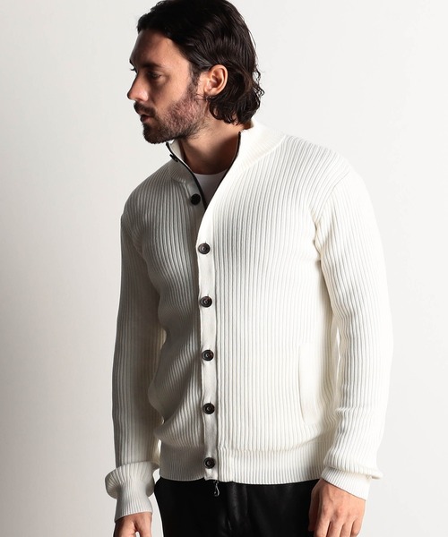 ■デザインハイゲ-ジ<12GG>で編み立てたプレ-ティング RIBのスタンド ZIP-UP ブルゾン。衿、裾、袖口は全面マルロン<極細のゴム糸>交編の二重臼リブになります。フロントファスナ-は前立て裏のサテンテ-プで挟み込んだこだわりの仕様。ボタン留めとの2wayデザインで着こなしの幅を広げます。ハイダブラックらしい綺麗目のスタンド ZIP-UP ニットブルゾンは、様々な大人カジュアルスタイリングをサポ-トできるアイテムに仕上がっています。■サイズややゆったりめのサイズ感で着心地抜群。■素材ハリとツヤ、そして軽さを兼ね備えたレーヨン、ポリエステルの糸を使用しています。プレーティングRIBは凹凸のある針抜き組織を2色で編み上げることにより、一味違う奥行き感が表現されています。※07ボルドー×ブラックは、ボルドーカラーをベースにしたボルドー×ブラックのプレーティングRIBになります。 91オフ×ブラックは、オフカラーをベースにしたオフ×ブラックのプレーティングRIBになります。伸縮性:あり生地の厚さ:程よい厚みあり