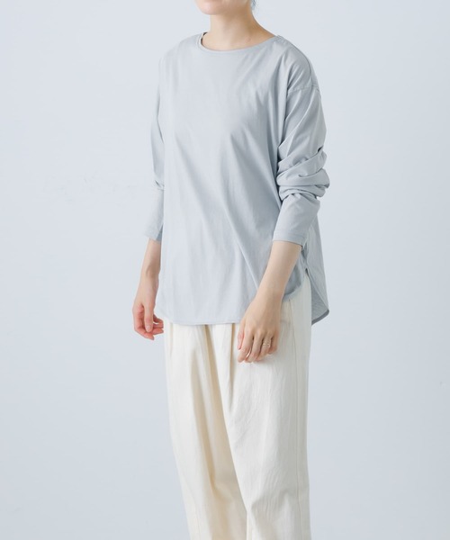 エアリーな肌心地と品のある透け感がポイント 細番手のコットンをハイゲージに優しく編み立てた生地を使用しています。大人好みなシアー具合も特長。程よくゆとりがあり、からだのラインを拾いすぎないのも嬉しいです。裾はラウンドになっていてさり気ないアクセントに。タックイン/アウトどちらのスタイリングにも映えます。晩夏に向けて1枚持っておきたいアイテム。 【FABRIC】 ・薄手で軽い着心地の天竺素材 ・綿100%で肌離れの良い風合い 【POINT】 ・そのままでも上品に決まり、ベストや羽織りものとのレイヤードにも活躍 ・開きすぎず詰まりすぎないちょうどいい襟のカッティング 【2024 Autumn/Winter】【24AW】 ※商品画像は、光の当たり具合やパソコンなどの閲覧環境により、実際の色味と異なって見える場合がございます。予めご了承ください。 ※商品の色味の目安は、商品単体の画像をご参照ください。 ▼お気に入り登録のおすすめ▼ お気に入り登録商品は、マイページにて現在の価格情報や在庫状況の確認が可能です。 お買い物リストの管理に是非ご利用下さい。 素材感 透け感 : ややあり(L.BLUE, OFF) 伸縮性 : あり 裏地 : なし 光沢 : なし ポケット : なし
