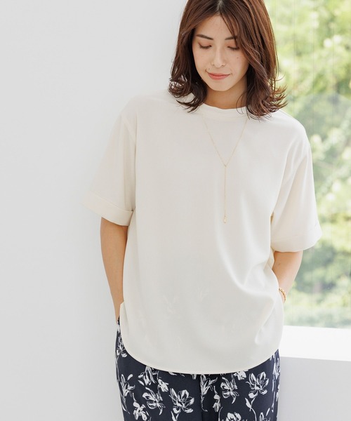夏を乗り切る強い機能つき!人気ブラウスの首元の仕立て違いが登場!大人気!機能素材でサラサラ快適ブラウスがリニューアル!前後2WAY着用できて着回し力とイージーケア対応でデイリー使いに役に立つ人気ブラウスが首回りのデザインが共生地になって登場です。シンプルながらもスタイリングしやすく残暑を快適に過ごせる1枚はポリエステルジョーゼットは速乾性があるので汗ばむ夏もサラサラ快適な着心地が続きます。デコルテをカバーしつつ、前後2wayで着られるのでコーディネートの幅が広がります。家庭でのイージーケアにも対応できるのでデイリー使いにぴったりです。接触冷感性なので着た瞬間から涼しく、汗をかきやすいシーズンに手放せない1枚。ーーー豊富なカラーバリエと、同シリーズのパンツとのセットアップでの着用もおすすめです。【素材】・サラサラとした肌触りと速乾性のある素材で汗をかいても快適・接触冷感機能で涼しいが続く・秋まで着れるシーズンレス素材で着回し力抜群・麻見えなのに合繊素材なのでシワを気にせずに着れてイージーケアでお手入れも楽ちん・UVカット機能【悩みに“効く”ポイント】・程よいサイズバランスで身体のラインを拾わずスッキリ見える・秋まで着られるシーズンレス素材と前後2WAYデザインで着回し力抜群